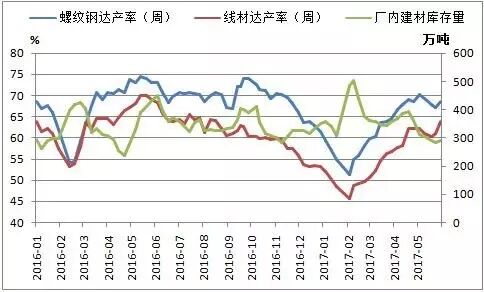 图二:建材钢厂库存及产能利用率走势