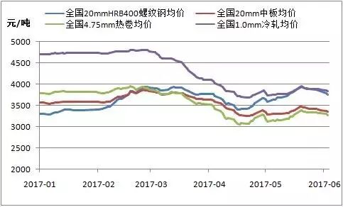 图一:全国四大钢材品种均价走势