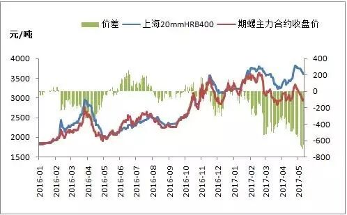 2017年上半年,期现价差呈现逐步扩大态势。两者修复空间很大,螺纹钢现货价格向期货靠近的可能性更大。